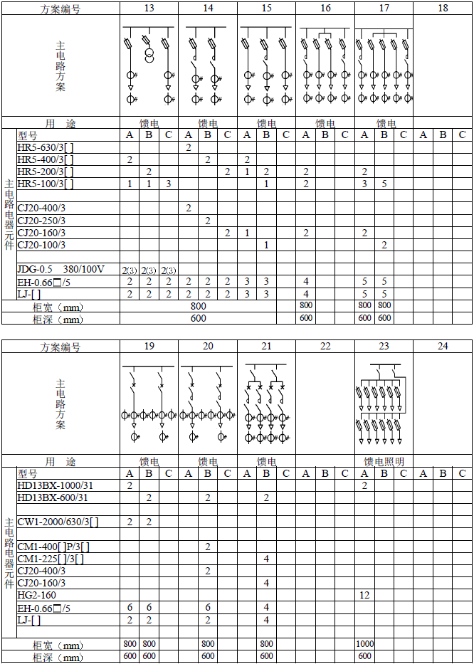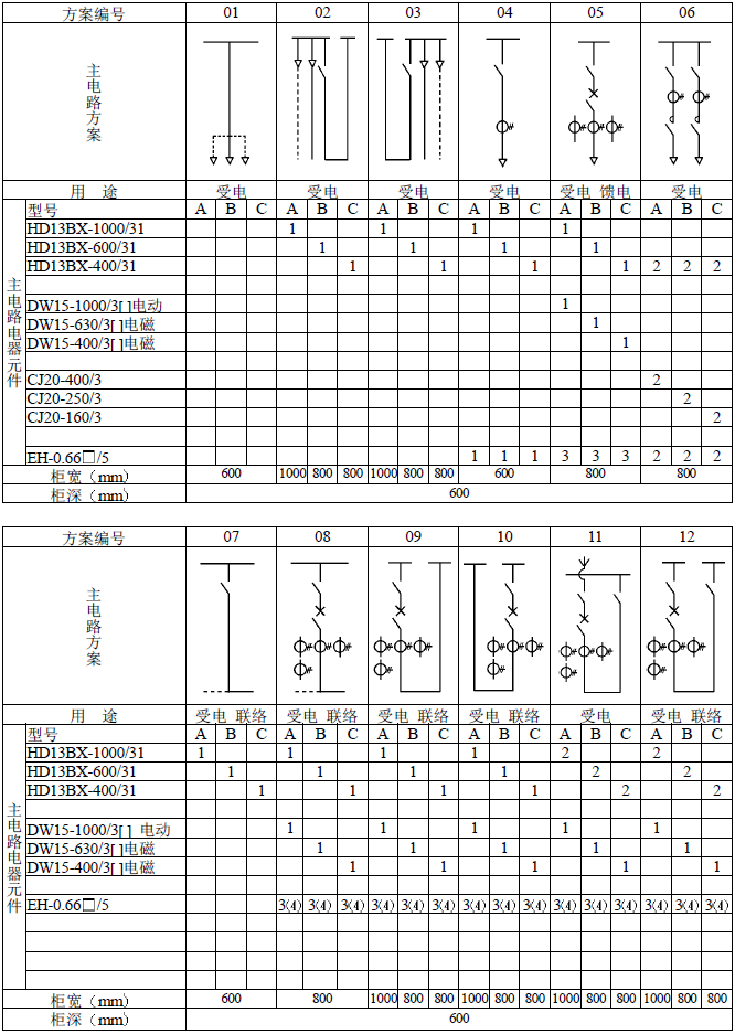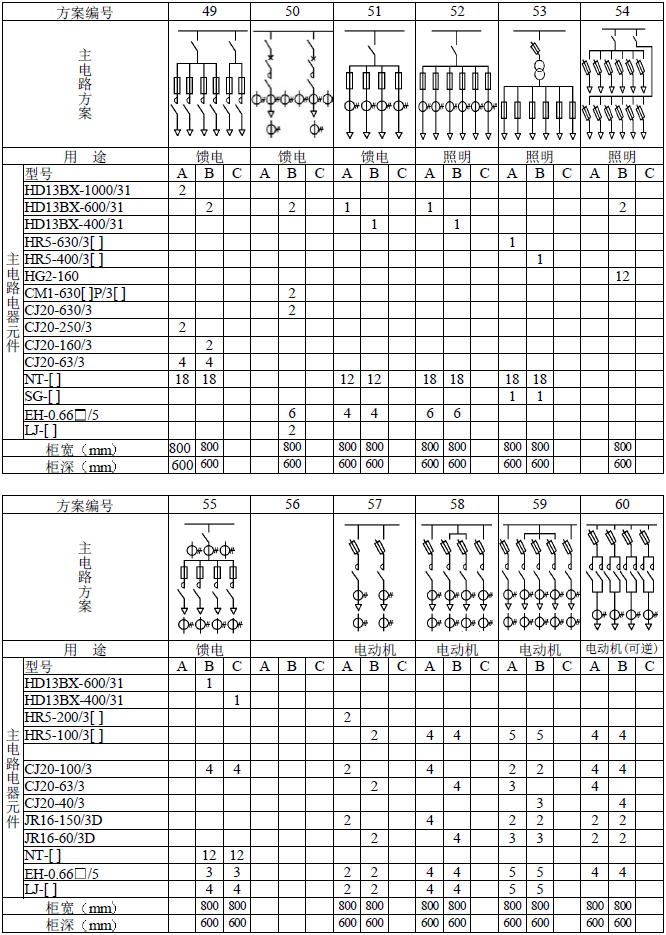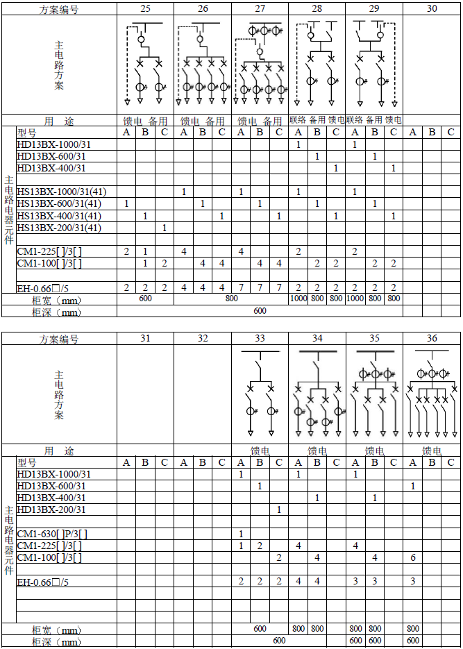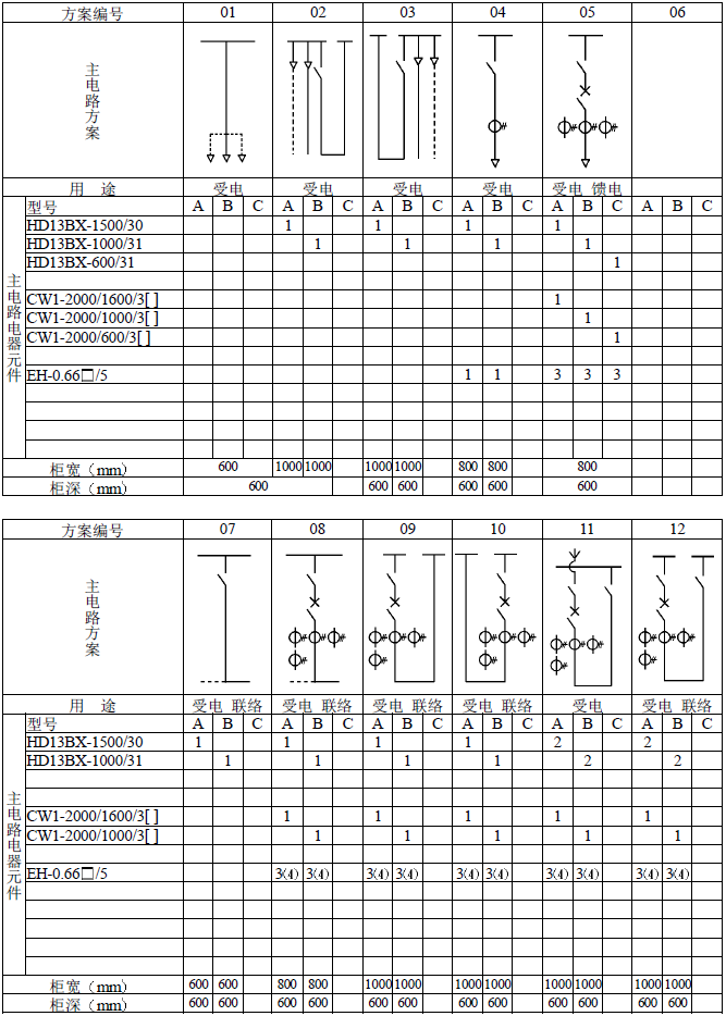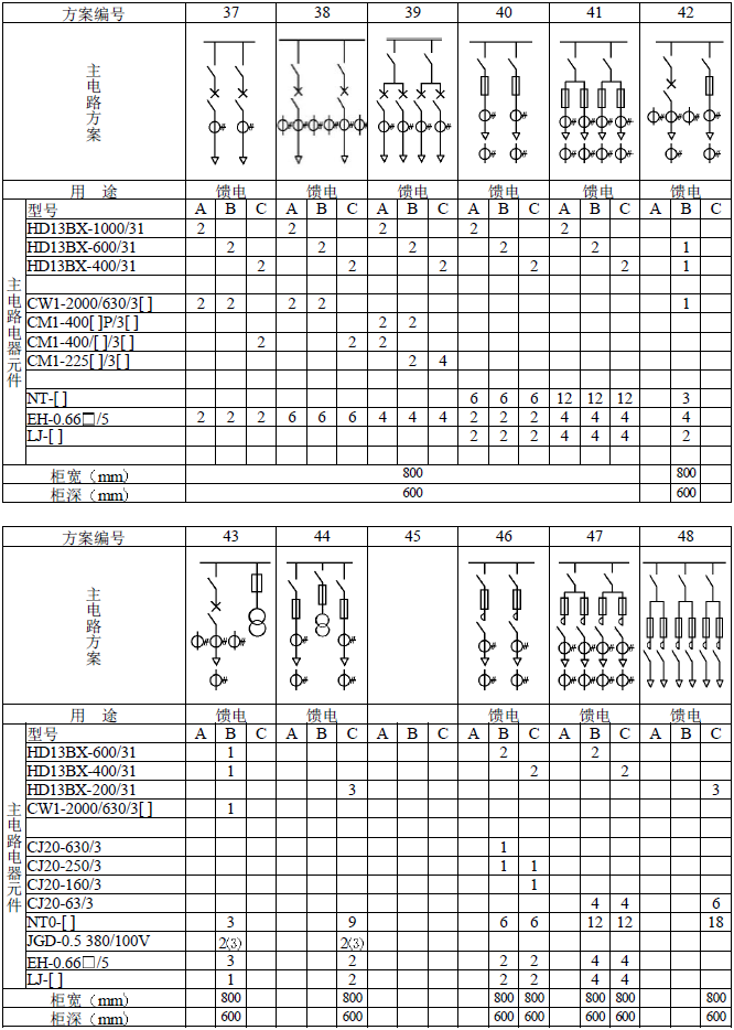 主電路方案是征求了廣大設(shè)計(jì)、使用部門的意見選編的,增加了發(fā)電廠需要的方案。額定電流增加到3150A,適合2000KV以下的配電變壓器選用。